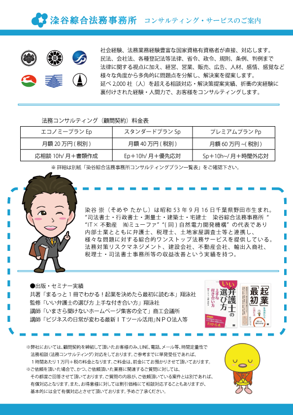 弊所では法務(+経営)コンサルティングサービスを提供しております。